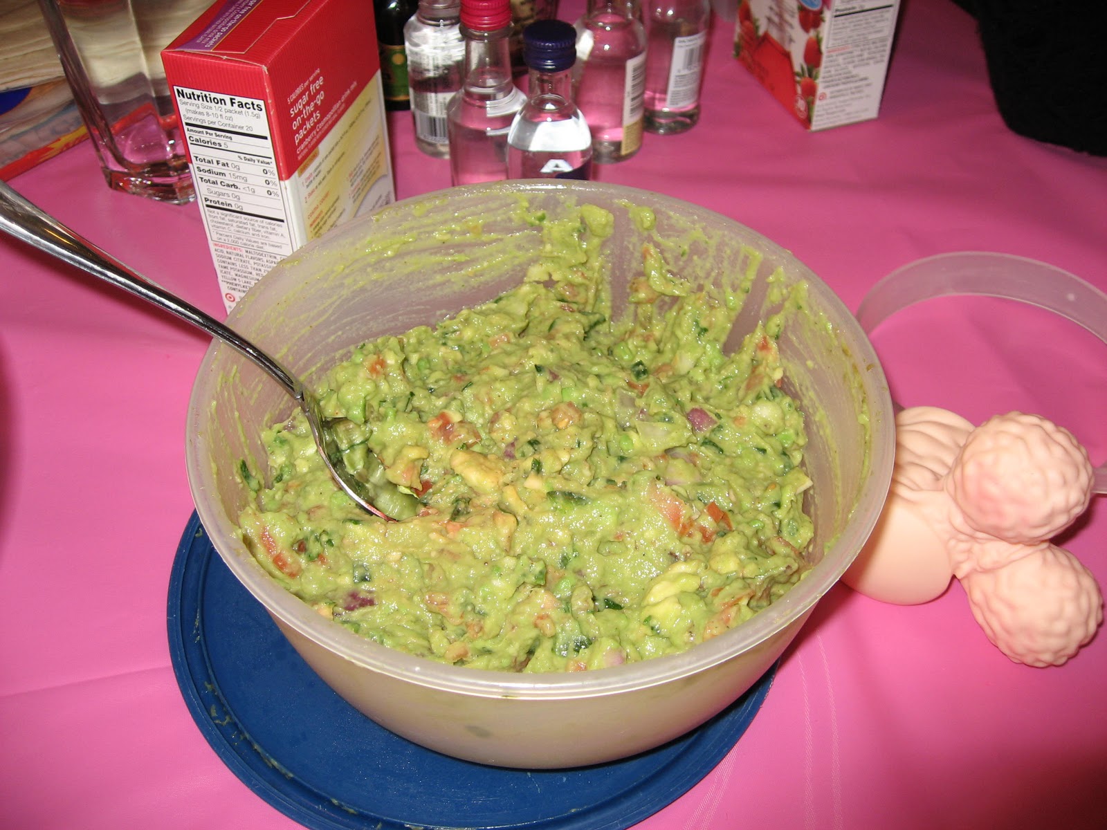 Bachelorette Party BEGINS... pitchers of Sangria, Tacos, and Jello shotsHomemade guacamole... 4 avocados, tomatoes, garlic, red onion, jalapenos, salt and pepper to taste.